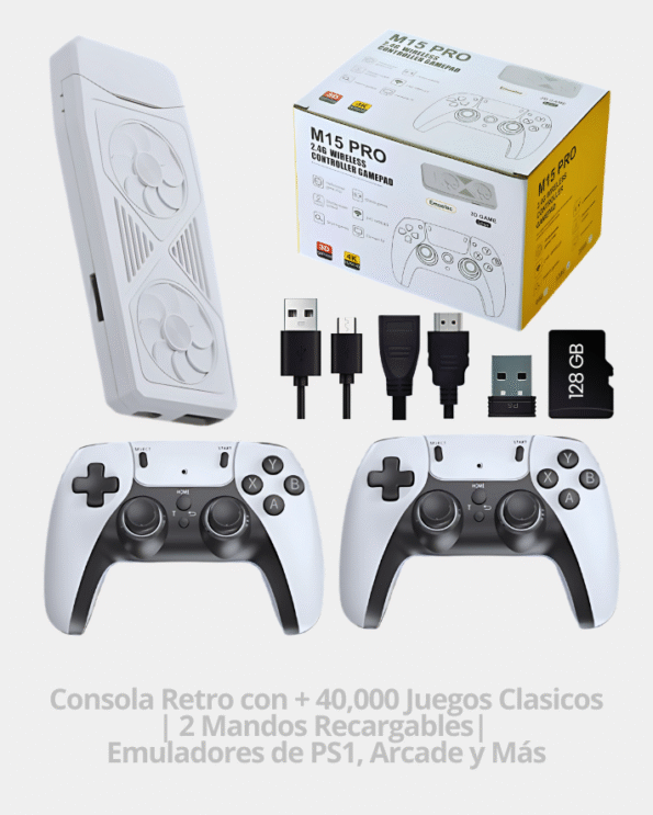 M15 PRO GAME STICK (128GB) – CONSOLA CON +40,000 JUEGOS Y MANDOS RECARGABLES
