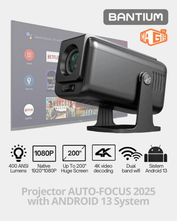 El Proyector Smart JY320 el mejor proyector en su versión actualizada 2025 Android TV con su diseño elegante y tecnología avanzada es la mejor opción. MAGIS TV GRATIS